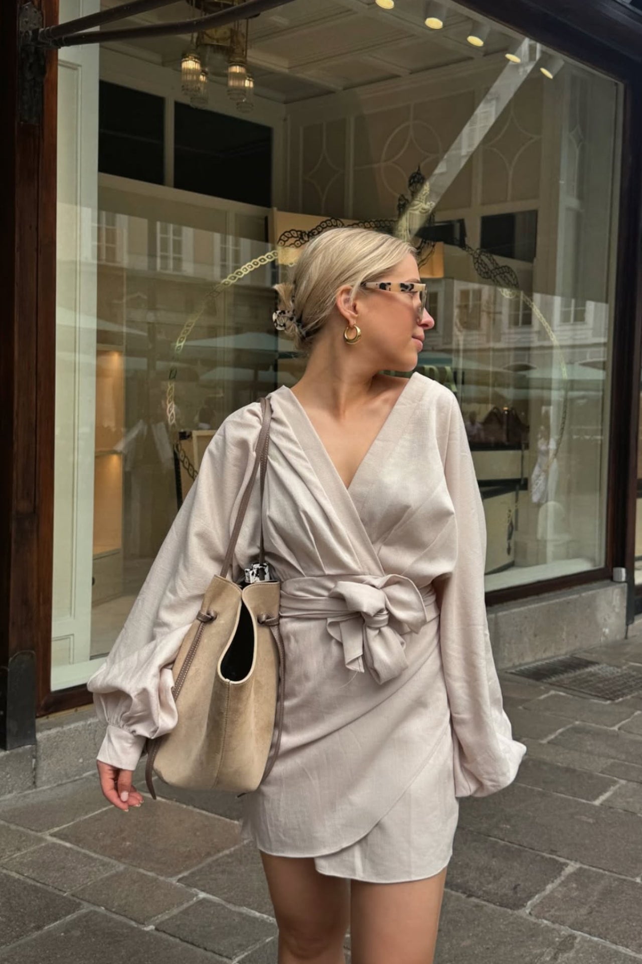 - Details: wrap model / long sleeves / v-neck / buttons at the end of the sleeves