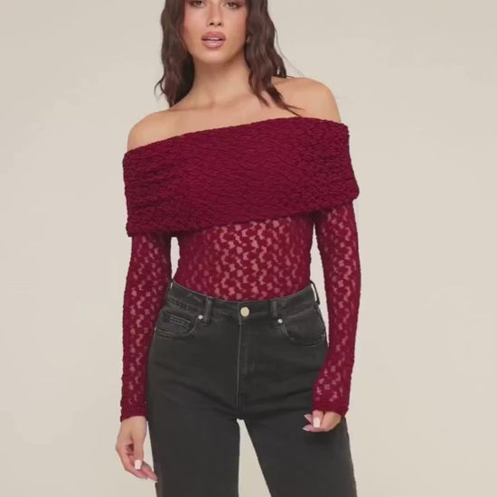 - Details: off-shoulder model / long sleeves / transparent fabric