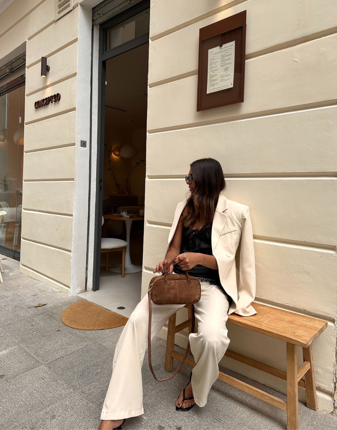- Was advies: handwas - Droger: nee- Details: getailleerde pasvorm / twee knopen / V-hals / schouder pads / lange mouwen / nep zak op linkerborst - Model lengte: 179 cm- Model draagt: maat S- Model lengte: 174 cm- Model draagt: maat S