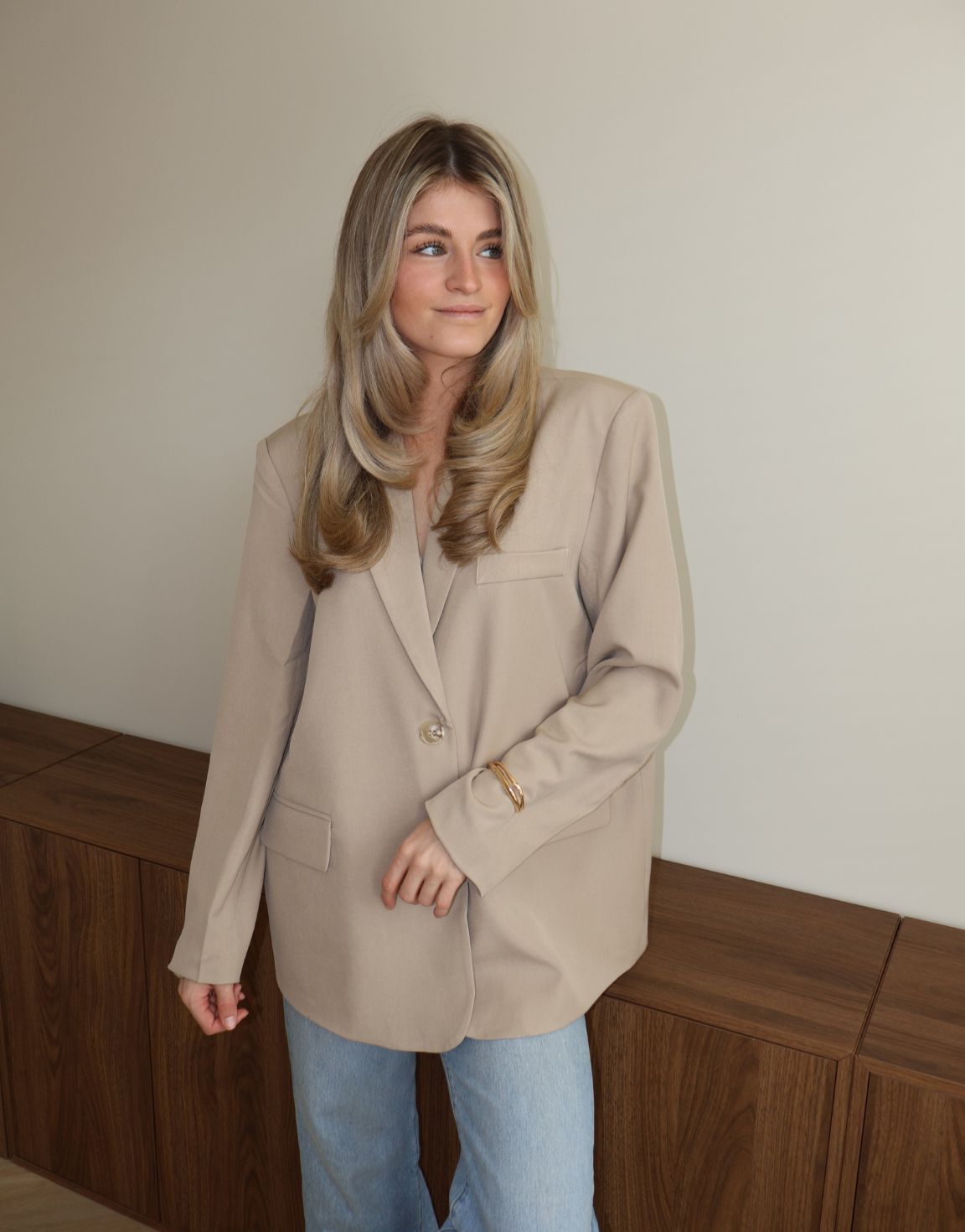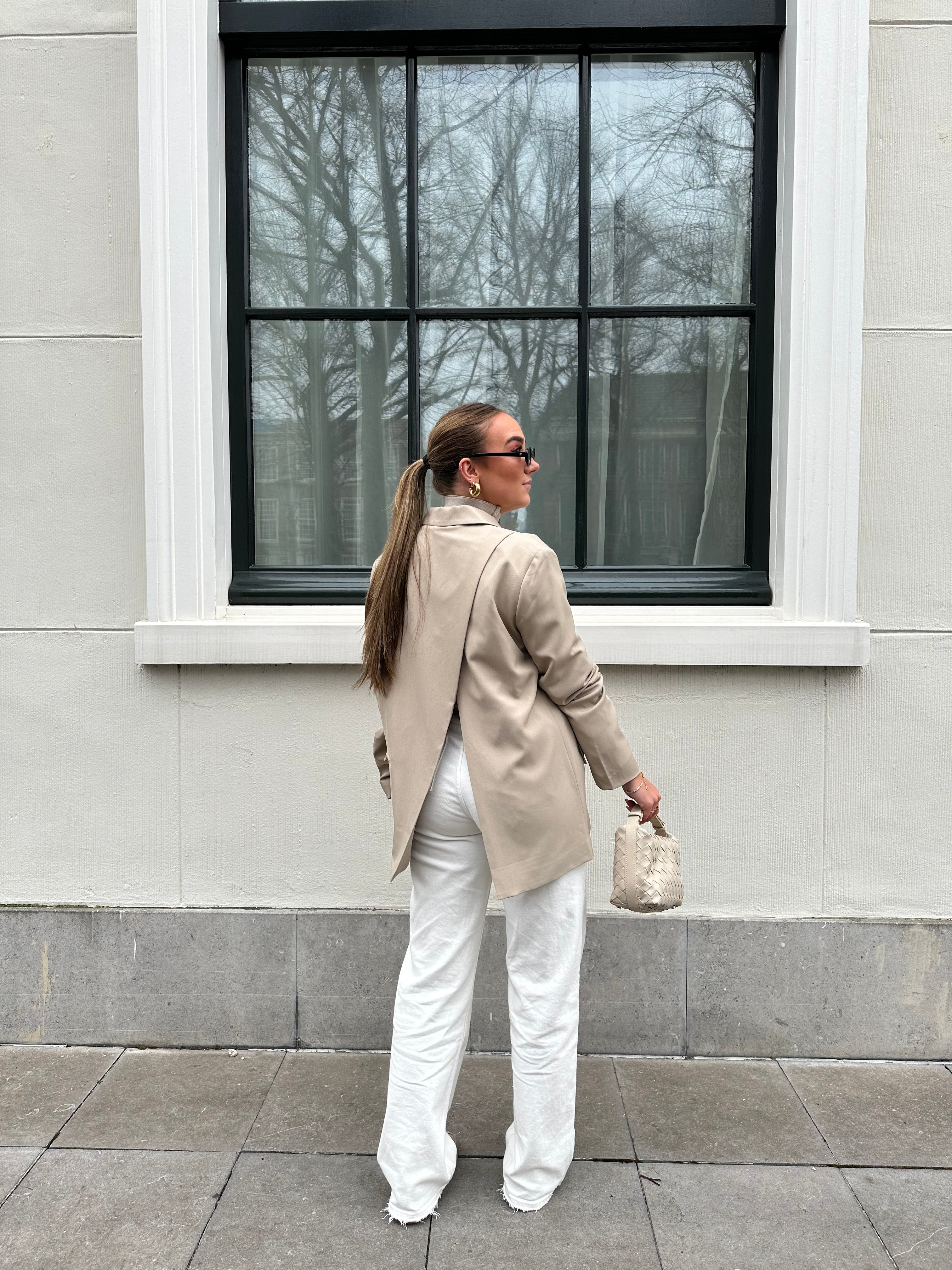 - Was advies: 40 graden- Droger: nee- Details: lange mouwen / hoge kraag / twee knoopsluitingen / drie nep zakken / open rug gedeelte, loopt schuin / kleine schouder pads / nep zak met knoopsluiting aan de achterkant / oversized fit - Model lengte: 170 cm- Model draagt: maat S/M