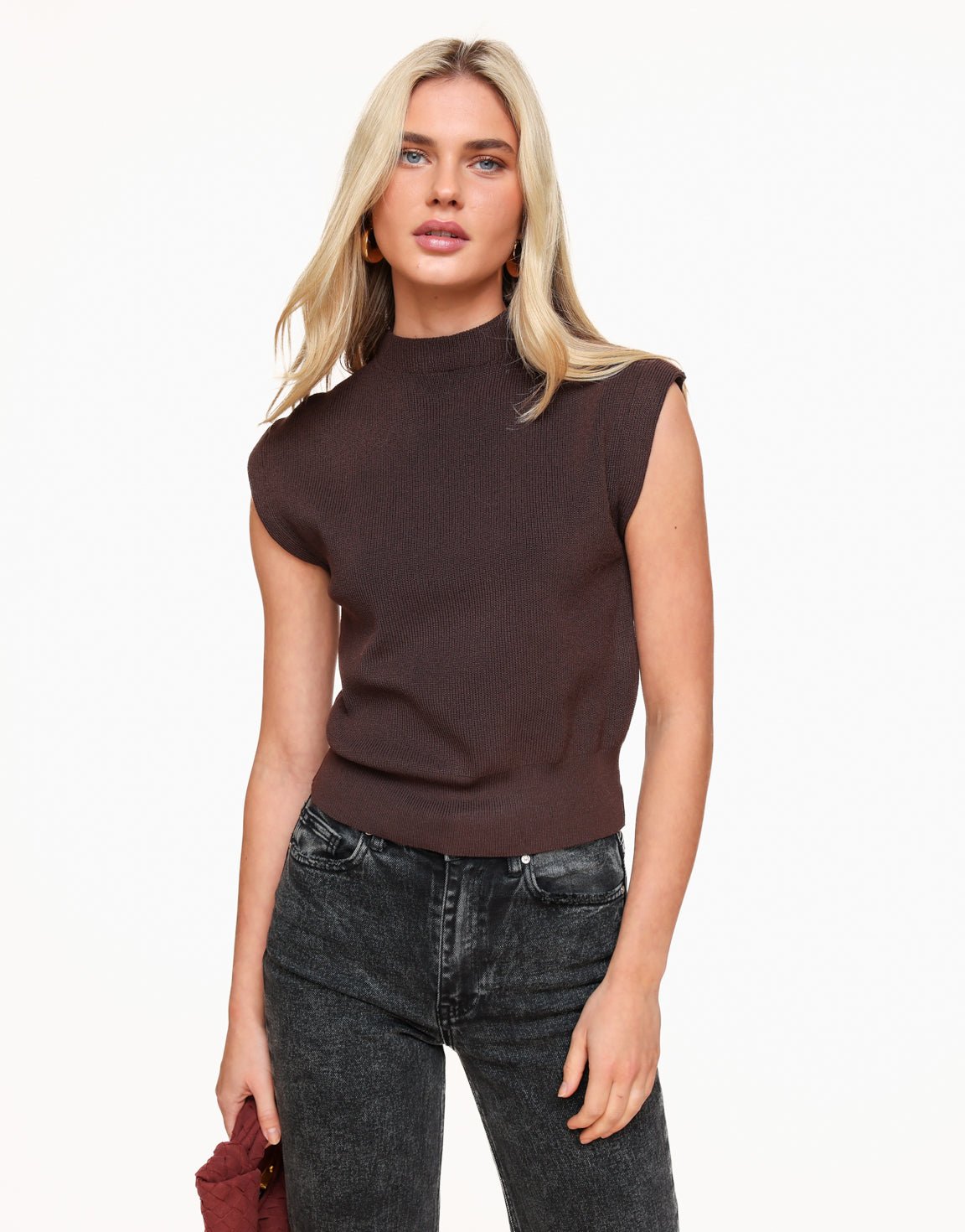 - Details: gebreide top / spencer mouwloos / ronde hals