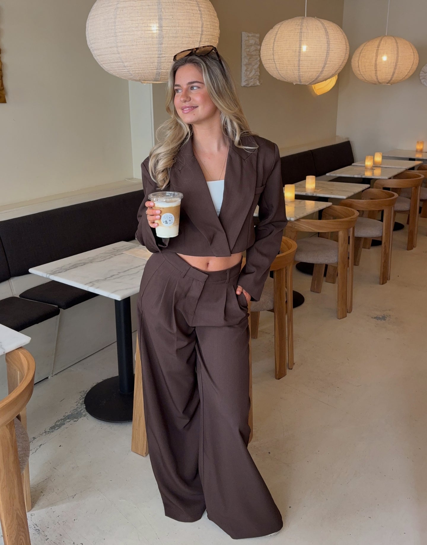 - Was advies: handwas- Droger: nee- Details: cropped model / lange mouwen / druk knoop sluiting / knoop detail op de mouw / schoudervullingen - Model lengte: 175 cm- Model draagt: maat S