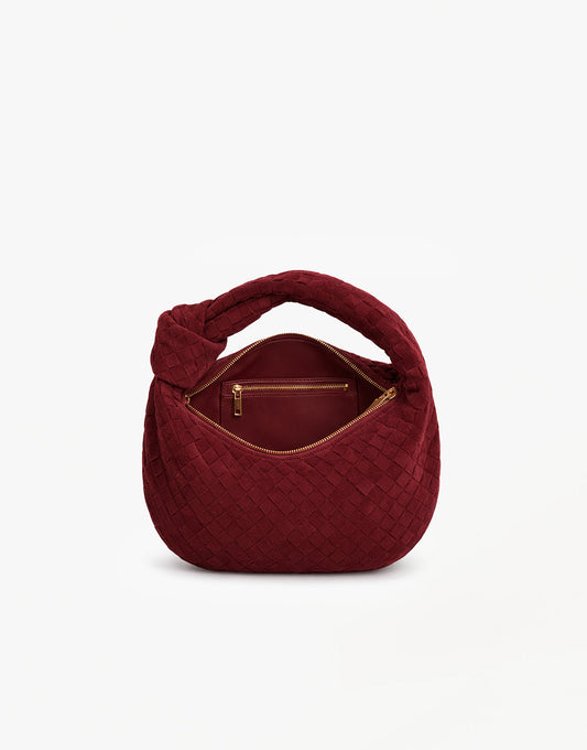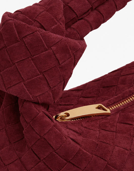 - Details: middel grootte suede tas / gevlochten / goudkleurige ritssluiting / ritsvakje met ritssluiting aan de binnenkant