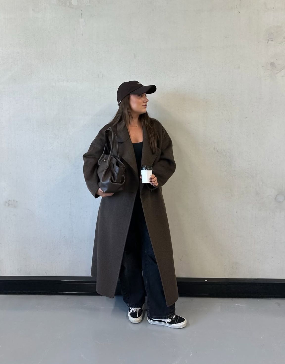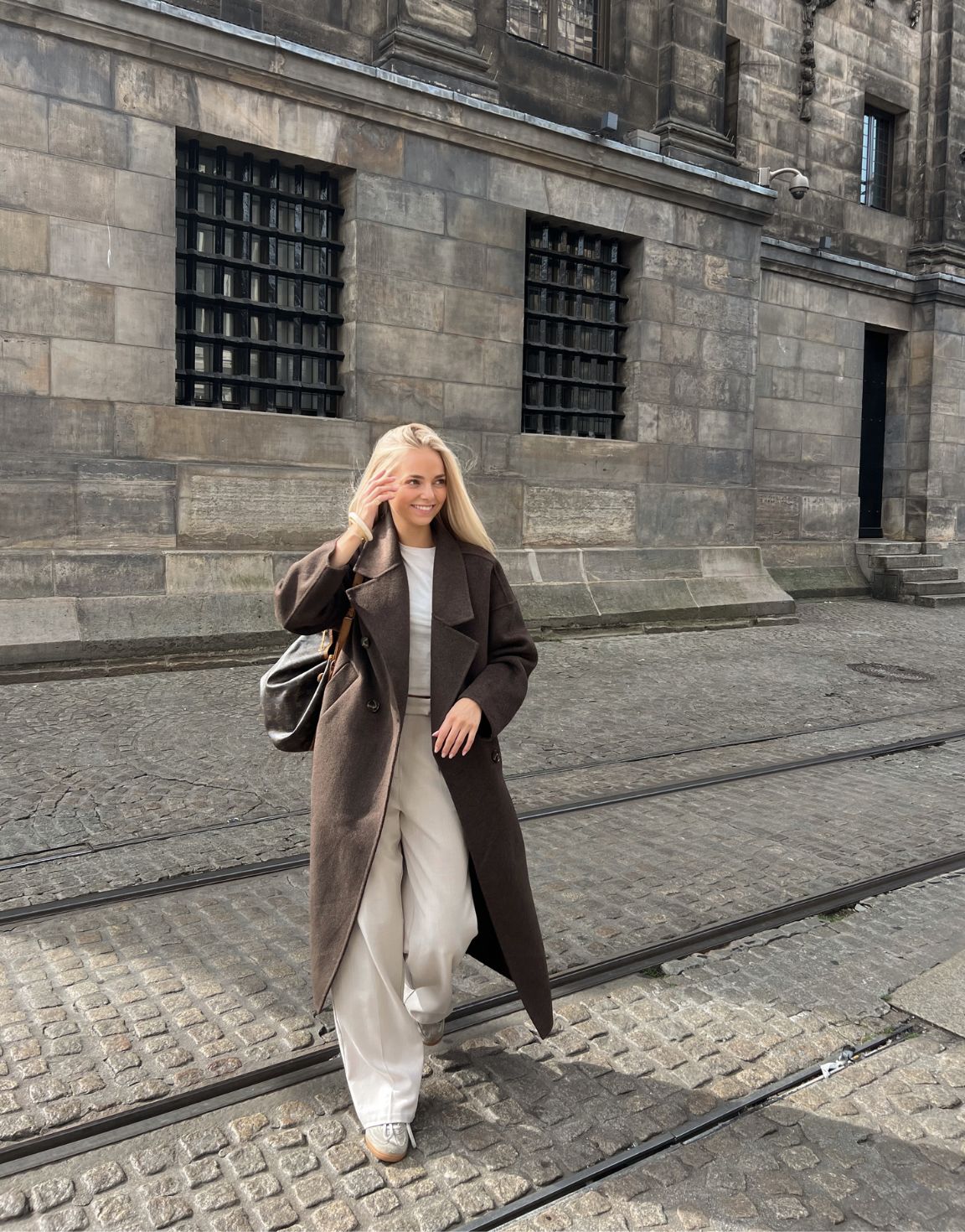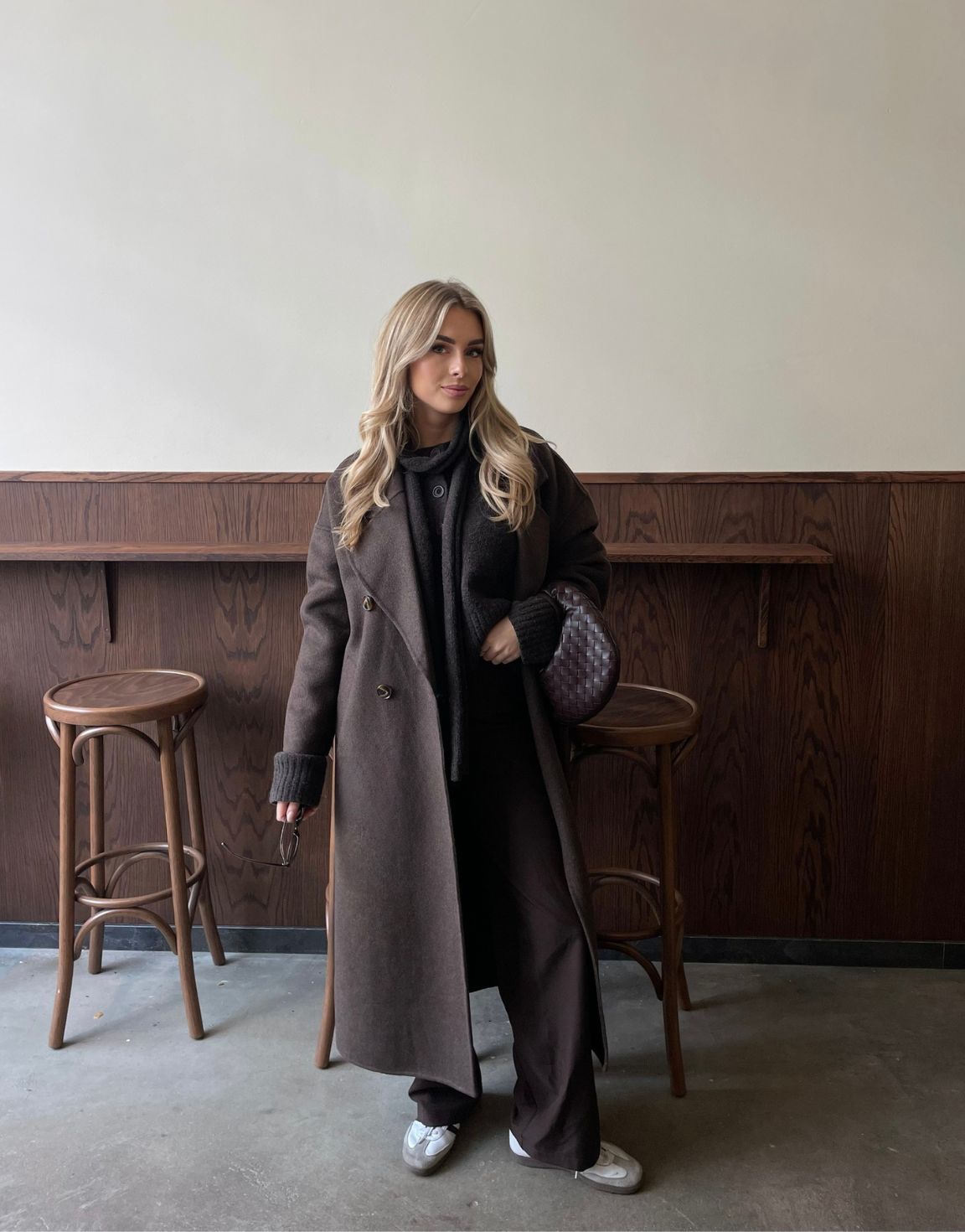 Art. Nr. :12744- Wasadvies: handwas- Droger: nee- Details: lange coat jas / lange mouwen / vier knopen aan de voorkant / twee zakken aan de voorkant - Model 1 lengte: 170 cm- Model 1 draagt: maat S/M- Model 2 lengte: 173 cm- Model 2 draagt: maat S/M