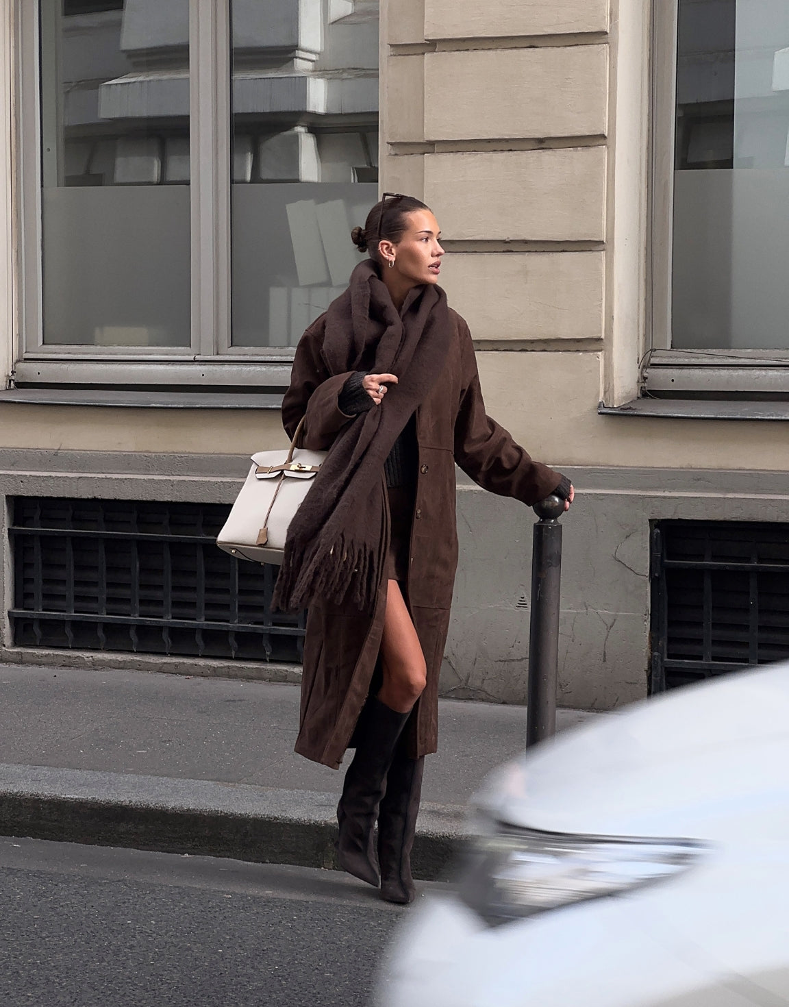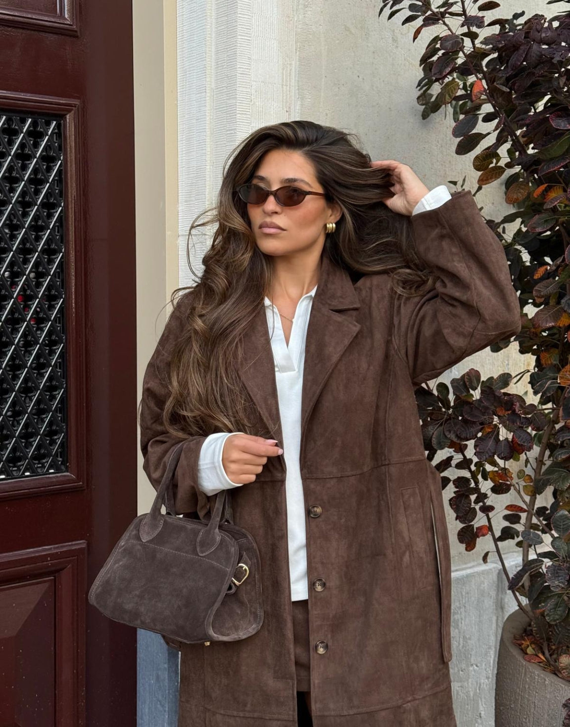 • Donkerbruine Lange Suede - Jas - Olivia & Kate