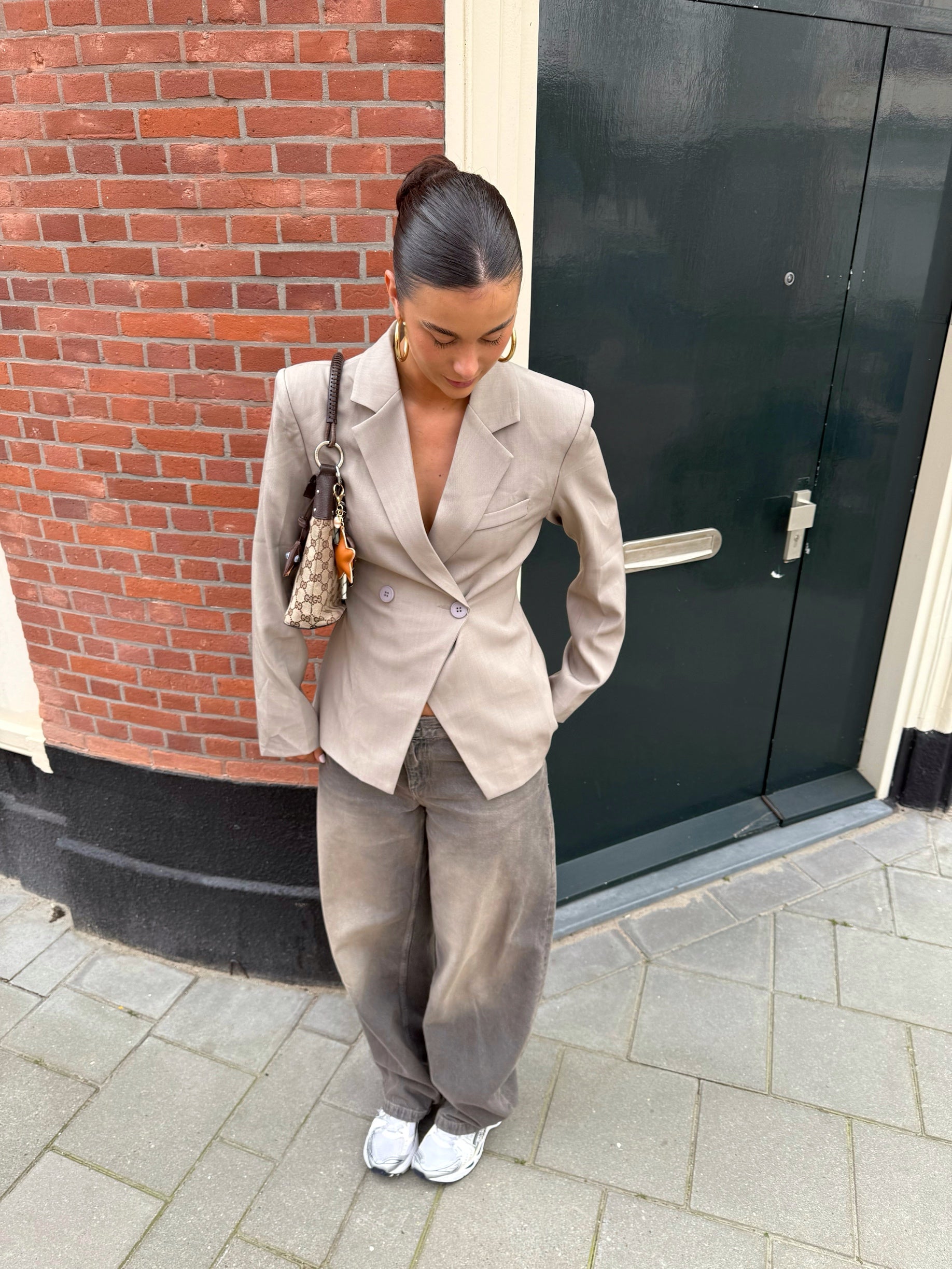 - Was advies: 30 graden- Droger: nee- Details: getailleerde pasvorm / lange mouwen / nep zak op linkerborst / schouder pads / twee knopen / oversized fit- Model 1 lengte: 173 cm- Model 1 draagt: maat S- Model 2 lengte: 175 cm- Model 2 draagt: maat S