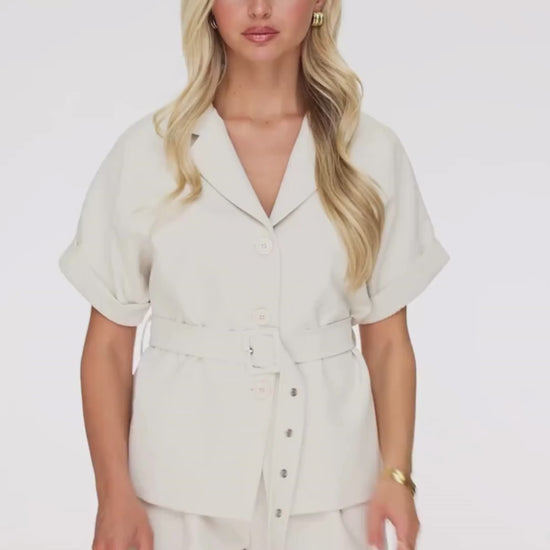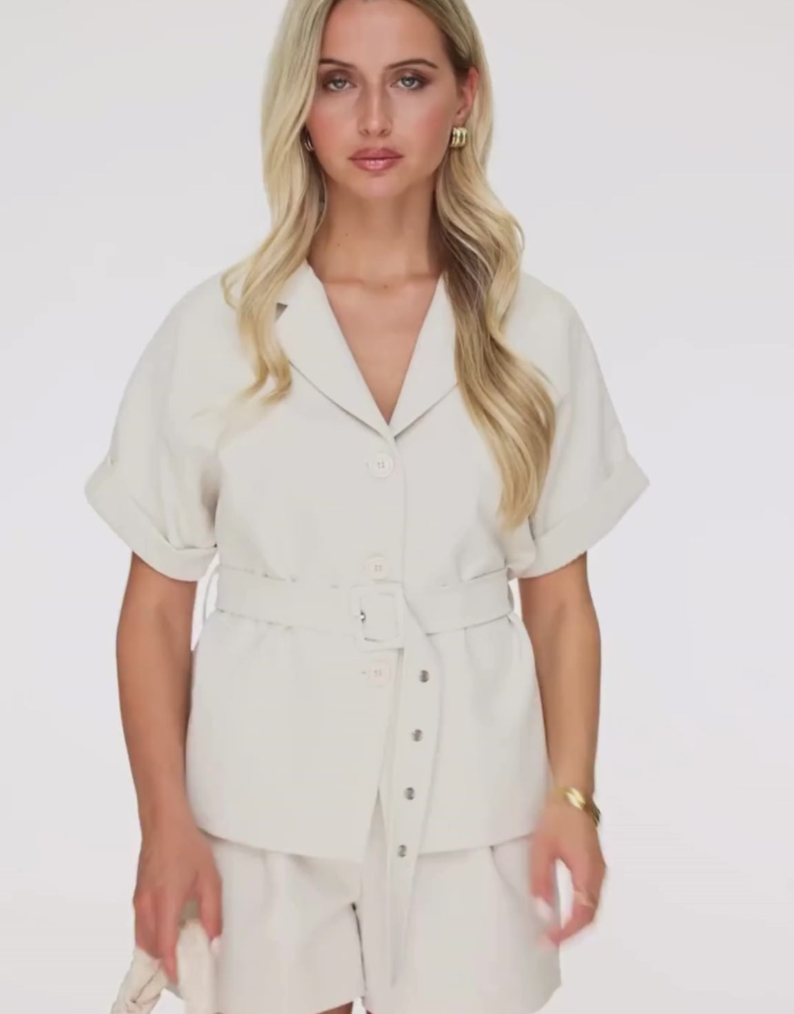 Art. Nr. : 12439- Was advies: handwas- Droger: nee- Details: knopen in het midden/ ceintuur is verstelbaar / omgeslagen detail op de mouw/ met kraag- Model lengte: 179 cm- Model draagt: maat S- Model lengte: 170 cm- Model draagt: maat S