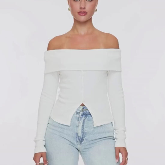 - Wasadvies: 30 graden- Droger: nee- Details: ribbel stof / off shoulder model / lange mouwen / knopen / dubbel geslagen aan de bovenkant / stretchy- Model 1 lengte: 173 cm- Model 1 draagt: maat S