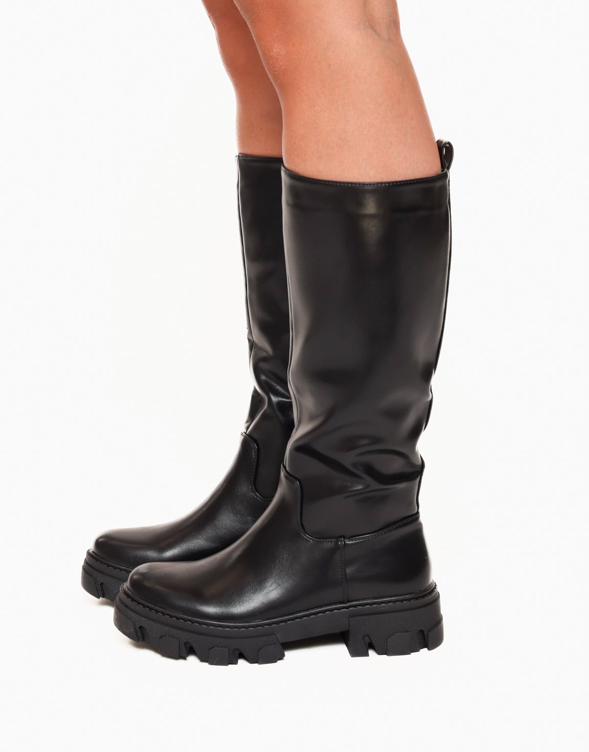 - Details: zwarte rits aan de binnenkant / treklusje / grove zool / bovenkant van de schacht uitrekbaar met elastiek / leren look